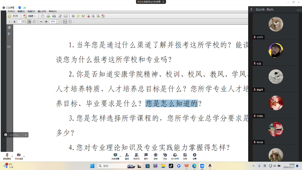 首先,万象城娱乐awc线路各辅导员对班级学生干部进行了培训,详细介绍了审核评估的目的、意义和重要性。强调审核评估是对学院教学质量、人才培养、学科建设等方面的全面检验,关系到学院的声誉和未来发展。从本科教育教学审核评估应知应会、学生说成长、人才培养方案、在校学生审核评估深度访谈座谈提纲等逐一进行分析,让班级学生干部们对审核评估有了更深刻的理解。