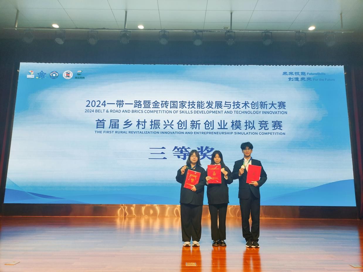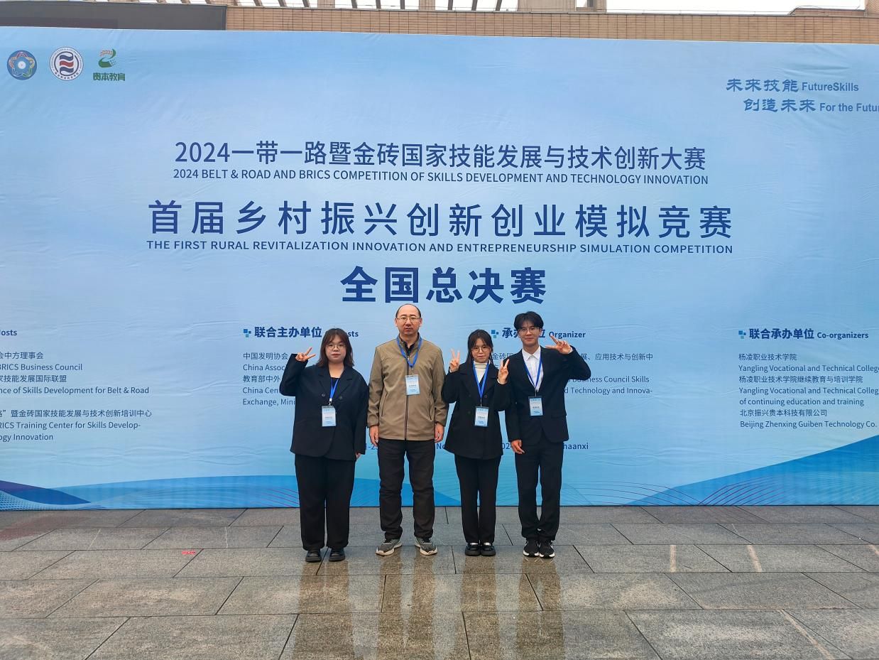 11月23日至25日,2024一带一路暨金砖国家技能发展与技术创新大赛首届乡村振兴创新创业模拟竞赛全国总决赛在杨凌职业技术学院举行,总决赛有来自全国26个省市经过校赛和东部、中部、西部大区赛层层选拔的195支队伍参加,经过激烈角逐,万象城娱乐awc线路2023级电子商务专业学生丁凡、宁佳瑞和经管学院2023级工程管理韩家乐团队荣获三等奖。