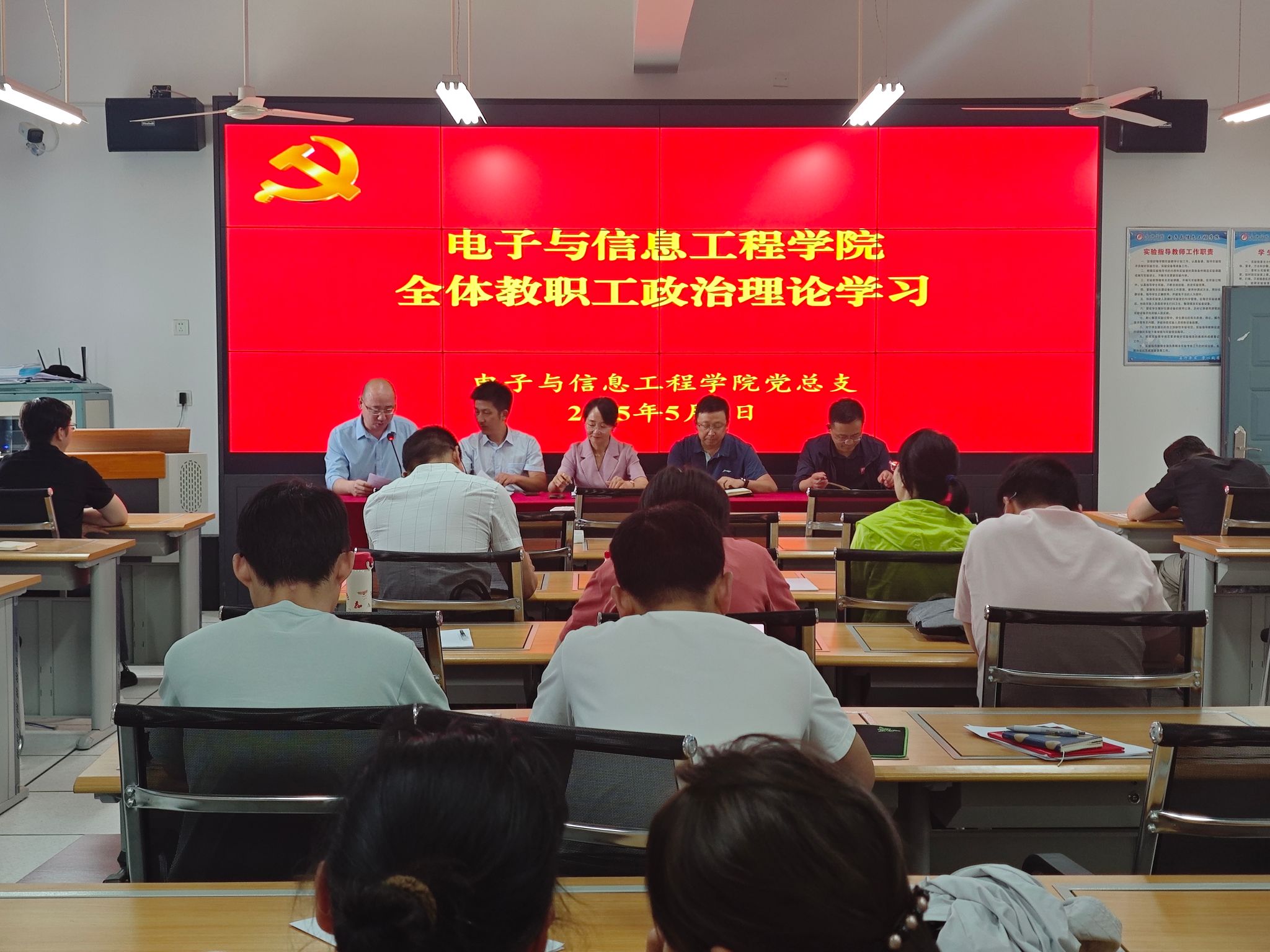 为巩固深入贯彻中央八项规定精神学习教育成果,加强师德师风建设,5月7日,电子与信息工程学院召开全体教职工政治理论学习会,深入学习贯彻落实相关会议精神,通报学院近期工作开展情况。本次会议由学院党总支书记田静主持,全体教职工参加。