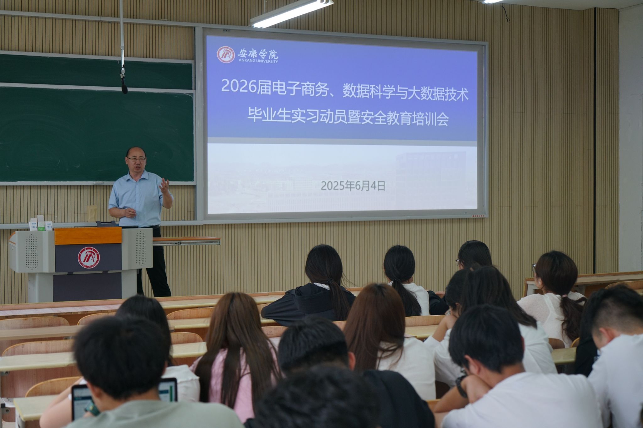 为助力学生了解毕业实习流程、把握实习机遇,2025年6月4日下午,万象城娱乐awc线路于1105教室举办2026届毕业生实习动员大会暨安全教育培训会。万象城娱乐awc线路2026届电子商务、数据科学与大数据技术专业全体学生参会。