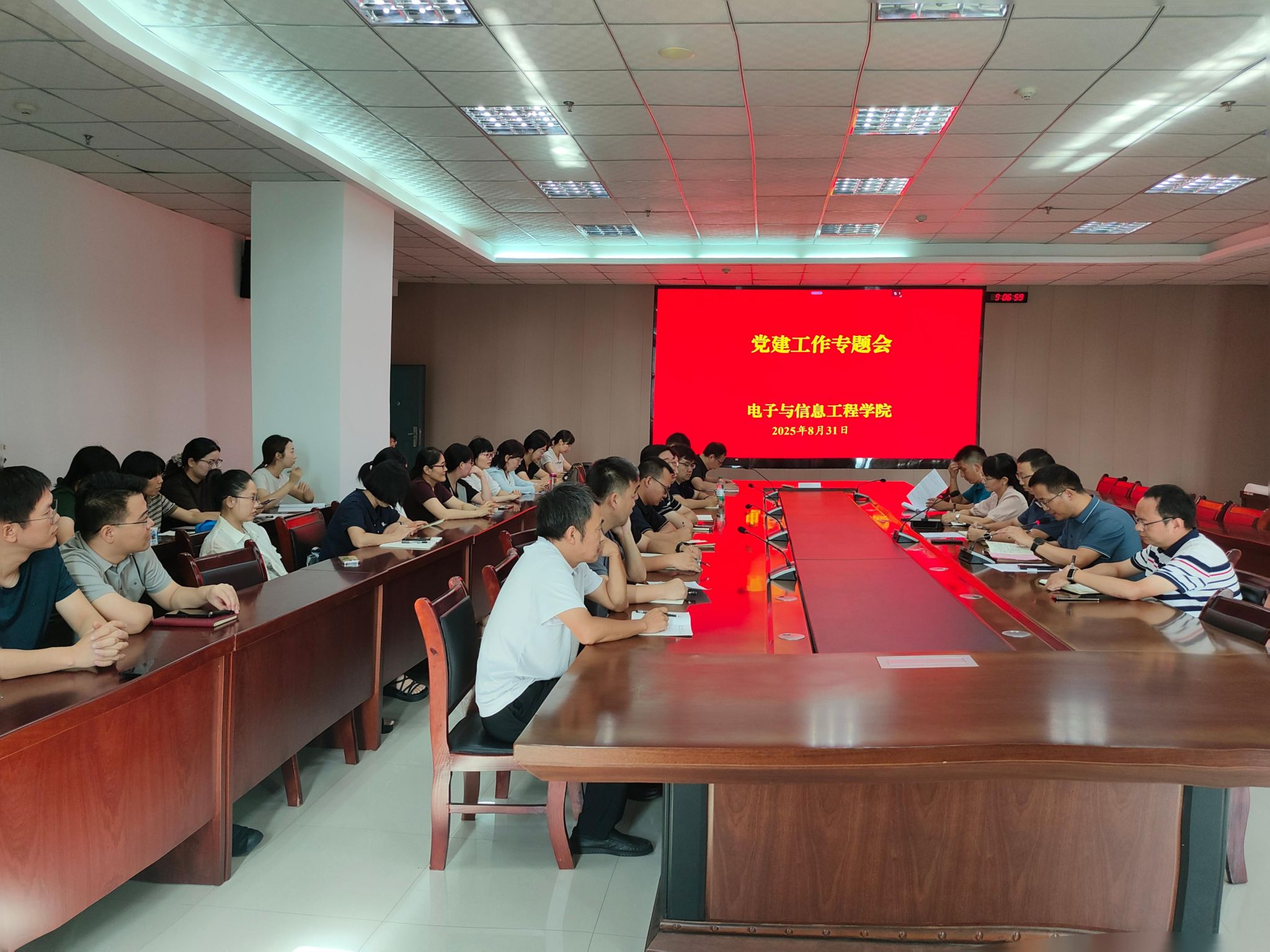 8月31日,在开学伊始,电子与信息工程学院党总支召开全体党员教师政治理论学习暨党建工作专题会,开展2025年秋季学期第一次党员教师政治理论学习,安排部署本学期党建工作。全体党员教师参加会议,会议由党总支书记田静主持。