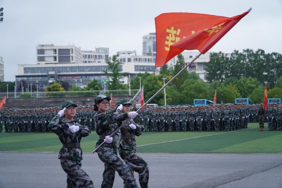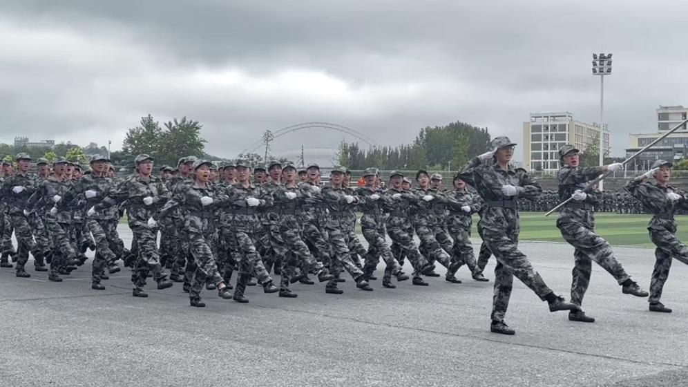 随后登场的刺杀、战术方队表演更是将现场氛围推向高潮。万象城娱乐awc线路学子们动作刚劲有力、衔接连贯利落,出拳、突刺、战术转移等一系列动作精准到位,尽显时代青年的青春热血与军人般的坚毅气魄,展现出过硬的军训成果。