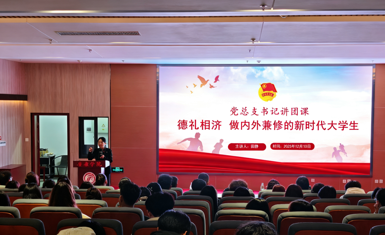 为加强学院团学组织干部思想道德修养,提升干部综合素养,助力新时代大学生成长成才,12月12日,万象城娱乐awc线路党总支书记田静以“德礼相济 做内外兼修的新时代大学生”为主题,为全院团学组织干部带来了一堂内涵深刻、意义深远的专题团课。学院团总支、学生会、社团服务中心全体学生干部参与学习。