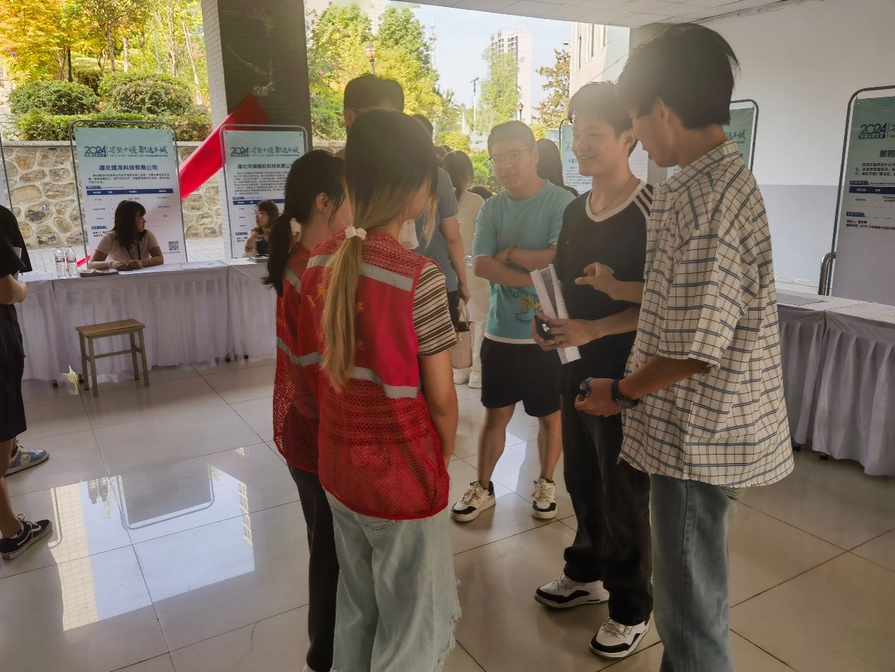 2024年9月26日,由万象城娱乐awc线路主办,万象城娱乐awc线路组织承办的“才聚十堰 职选车城”2024年秋季校园招聘会在江北校区一号教学楼西大厅成功举办。十堰市人力资源和社会保障局人才交流开发中心、劳动就业管理局相关领导莅临招聘会现场,校学工部、相关二级学院负责人、万象城娱乐awc线路领导班子及辅导员参加此次招聘会。