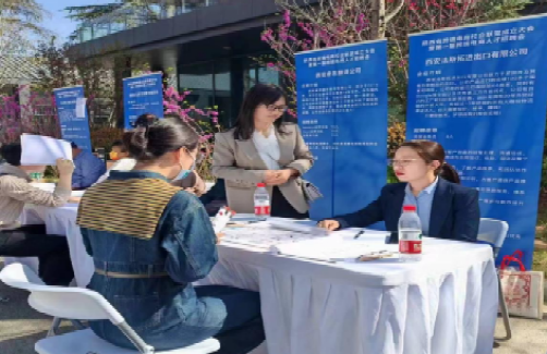 与此同时,报告厅外,省内86家跨境电商企业提供跨境电商运营、营销、供应链等岗位需求600余个,共吸引西安、宝鸡、安康等地40多所高校的800多名师生到场参会。
